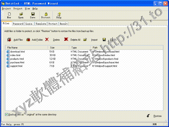 • Html Password Lock v4.5 英文正式版(對網頁及整個網站進行口令保護的軟體)
